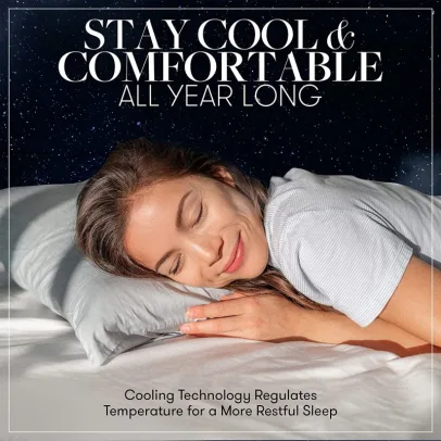 Breathable cotton and cooling technology regulates temperature for a cooler sleep all night long.