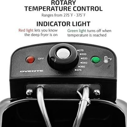 - ADJUSTABLE TEMPERATURE CONTROL – With a temperature range of 275°F to 375°F, you can fry a wide variety of comfort foods such as French fries, chicken tenders, chimichangas, corn dogs, poppers, spring rolls, fritters, doughnuts, beignets, funnel cakes, even homemade potato chips. The possibilities are endless.