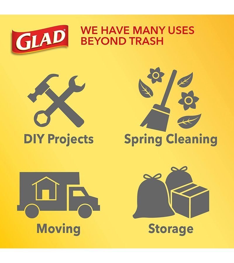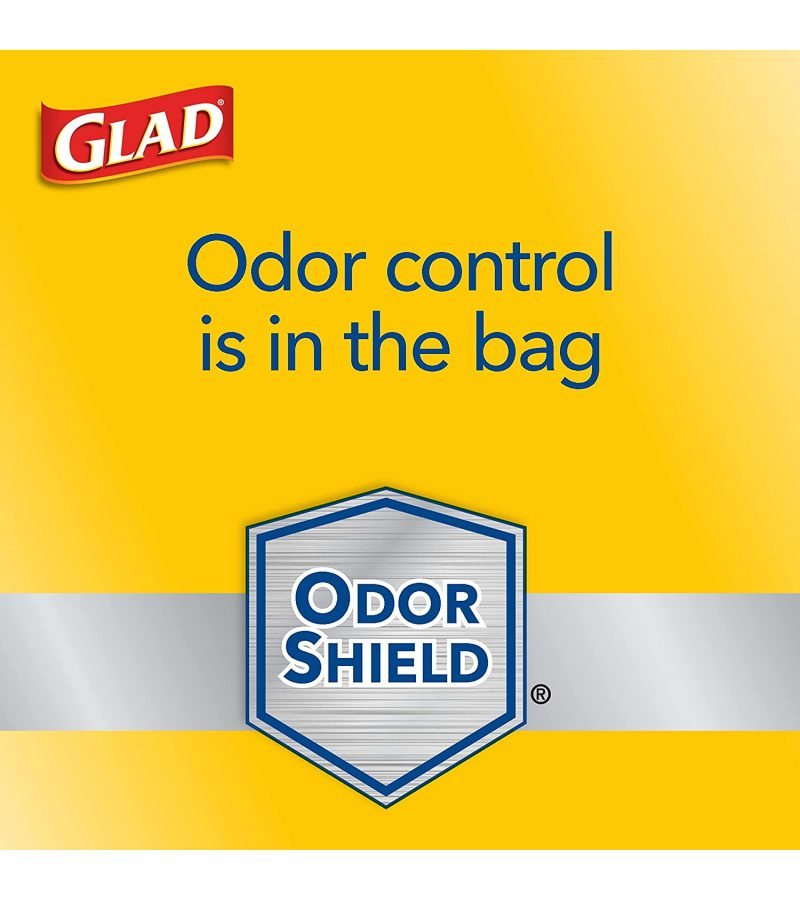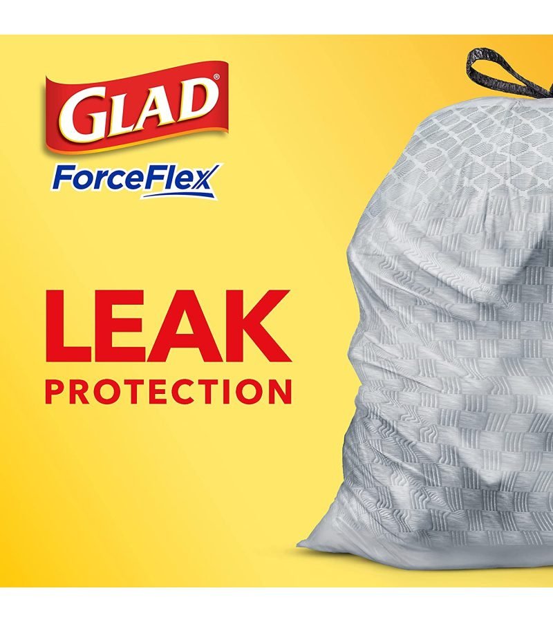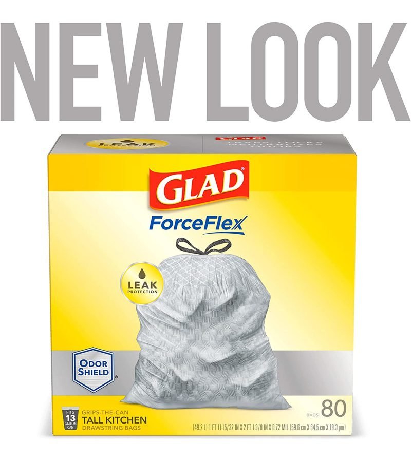 13 GALLON PLASTIC TRASH BAGS: Kitchen trash has never smelled better. Glad ForceFlex Kitchen trash bags with odor protection continuously neutralizes odors; Packaging may vary