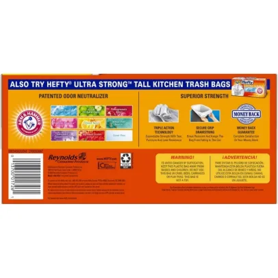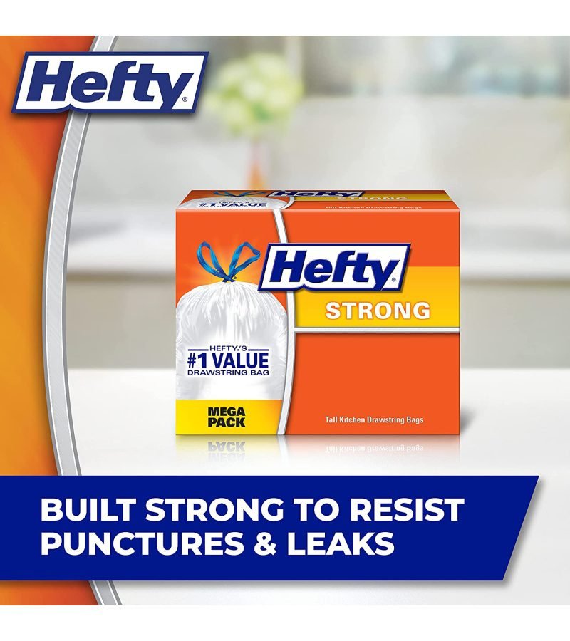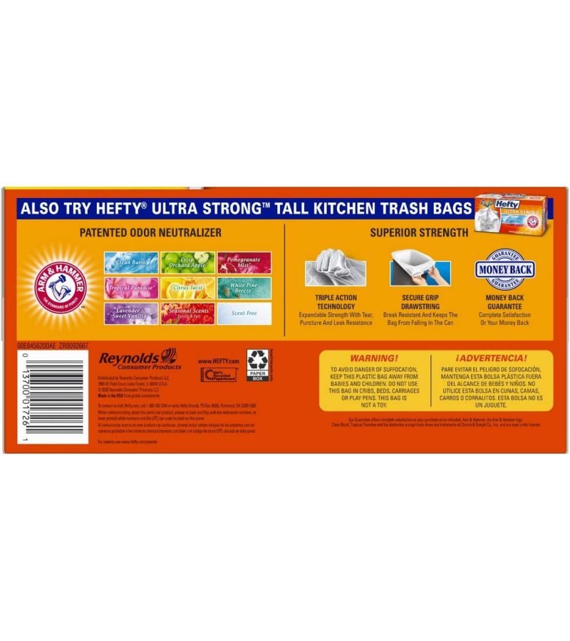 Hefty Strong Tall Kitchen Trash Bags, Odorless, 13 Gallons, 120 Count.