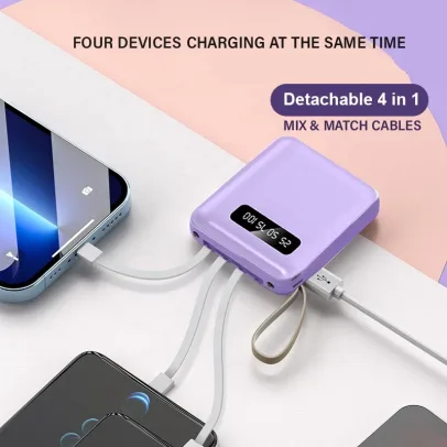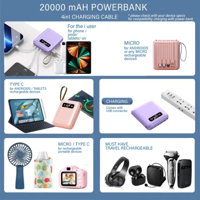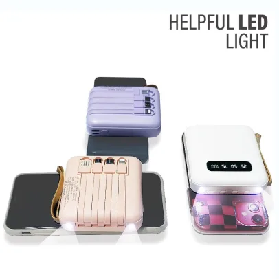 🔥today only sale 🔥IEC Certified Mini Power bank 20000mAh with Multiple Cables Powerbank and LED torchlight