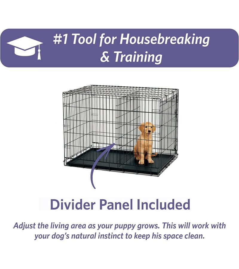 iCrate also comes with a free divider panel for use while your puppy is growing. The divider panel will allow you to adjust the length of the living area while your puppy grows, keeping the living space small enough to reduce the chance of your puppy eliminating in one end and sleeping in the other.