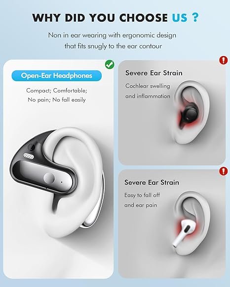 - Enhanced Awareness – Stay connected to your surroundings with open-ear headphones. These Bluetooth earbuds allow ambient sounds, which is crucial for the early detection of potential hazards. Unlike in-ear devices, you can converse without removing them, which is ideal for social and work settings. Prioritize security and spatial awareness.