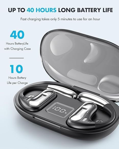 - Cutting-edge Connectivity with Bluetooth 5.3: Stay ahead with these open-ear wireless earbuds featuring advanced Bluetooth 5.3 technology. Enjoy rapid data transfer and a stable connection within a 33-foot range. Experience uninterrupted, low-latency audio from the moment you remove them from the case, thanks to the smart auto-on and connect feature.