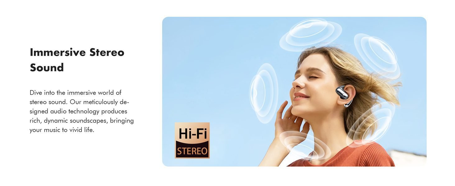 - Immersive Stereo Experience & Clear Calls – Equipped with 16.3mm dynamic drivers, these earpieces deliver powerful stereo sound, allowing you to discern subtle nuances in music. Experience flawless reproduction of instruments and vocals. The advanced drivers also excel in providing crystal-clear communication. By precisely capturing voices, these open-ear wireless Bluetooth earbuds become a conduit for uninterrupted conversations, creating a face-to-face communication experience.