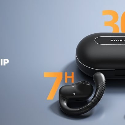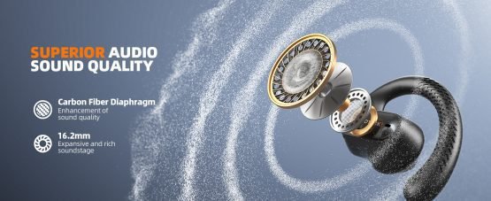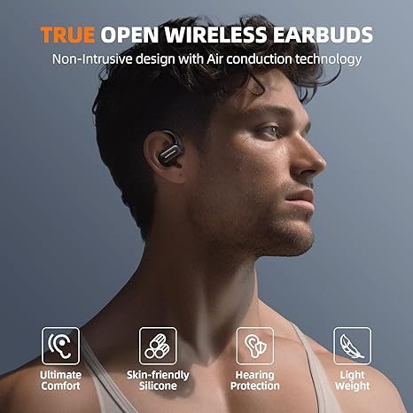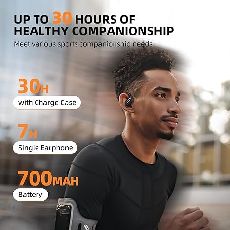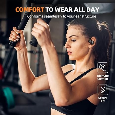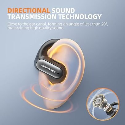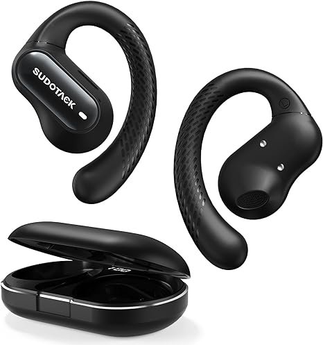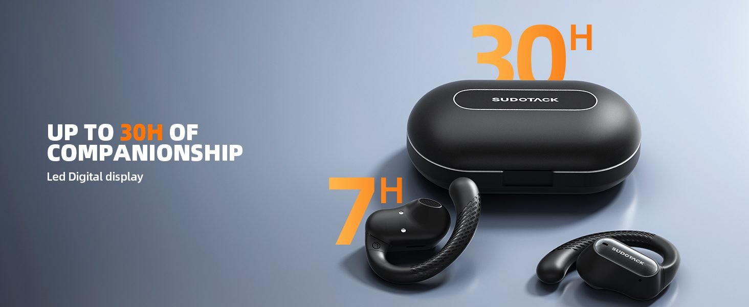 SUDOTACK Ultrafit Wireless Open Ear Headphones, Up to 30 Hours Playtime Air Conduction Sport Earbuds, 5.3 Bluetooth Wireless Earphones with LED Display, Sweat-Proof for Workouts and Running(Black)