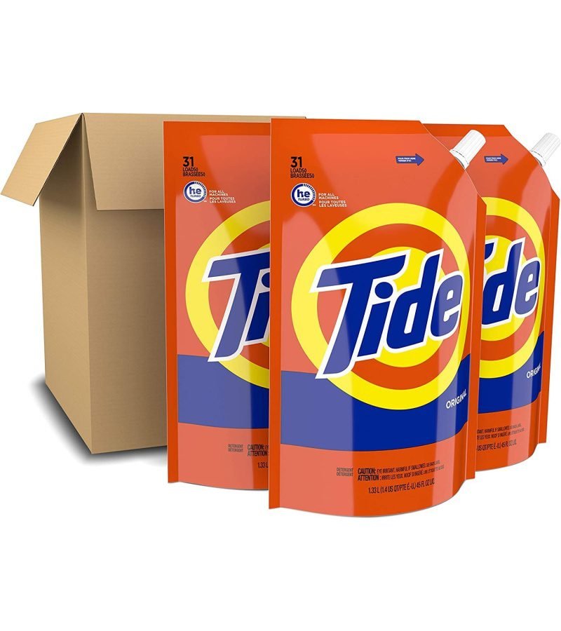America’s #1 detergent*, now even better. This Tide liquid laundry detergent has an improved formula engineered to attack tough body soils. Tide’s HE Turbo Clean detergents feature Smart Suds technology. The quick-collapsing suds clean faster and rinse out quicker, even in cold cycles. Tide HE laundry detergent keeps your whites white and your colors colorful with a refreshing scent, wash after wash. The Tide clean you love is also available in Tide PODS laundry pacs. * Based on sales, Nielsen laundry detergent category Tide Smart Pouch packaging makes your laundry detergent more convenient to store and really easy to use; just pour it from the pouch into an empty Tide bottle or use it directly from the pouch using a measuring cup. Enjoy great cleaning performance from innovative packaging.