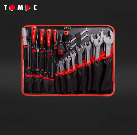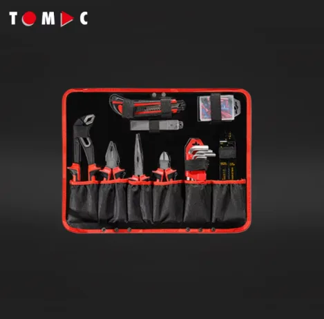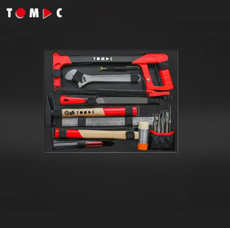 Slotted screwdriver, Long nose pliers 200 mm, Side cutting nippers 160 mm, Socket, Bits, Universal Joint, 10″ box joint water pump pliers, Snap-off cutter with auto-lock 18 mm + 3 blades, Steel ruler 300 mm